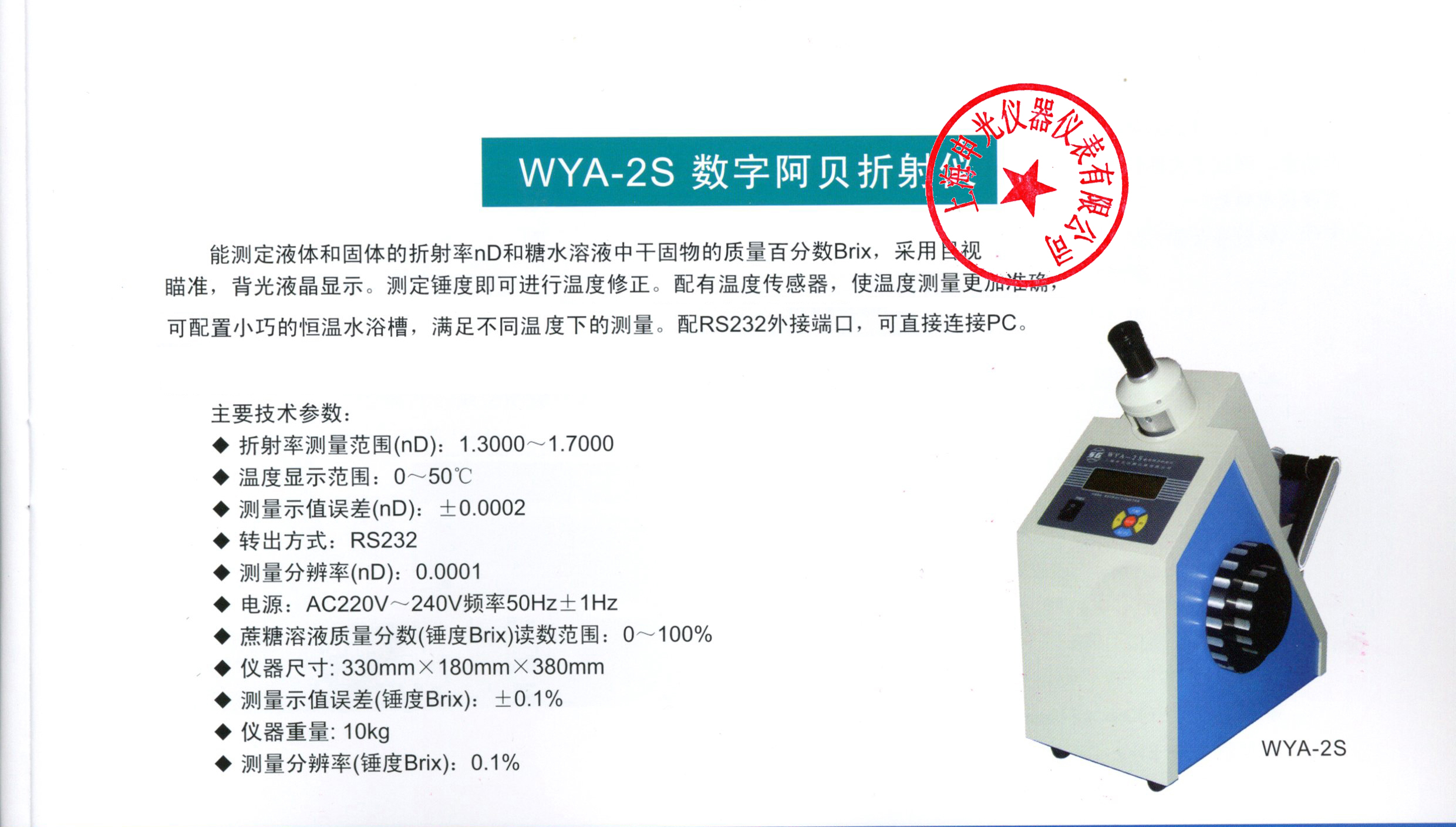 测定液体或固体的折射率nd和糖水溶液中干固物的百分含量即Brix锤度。